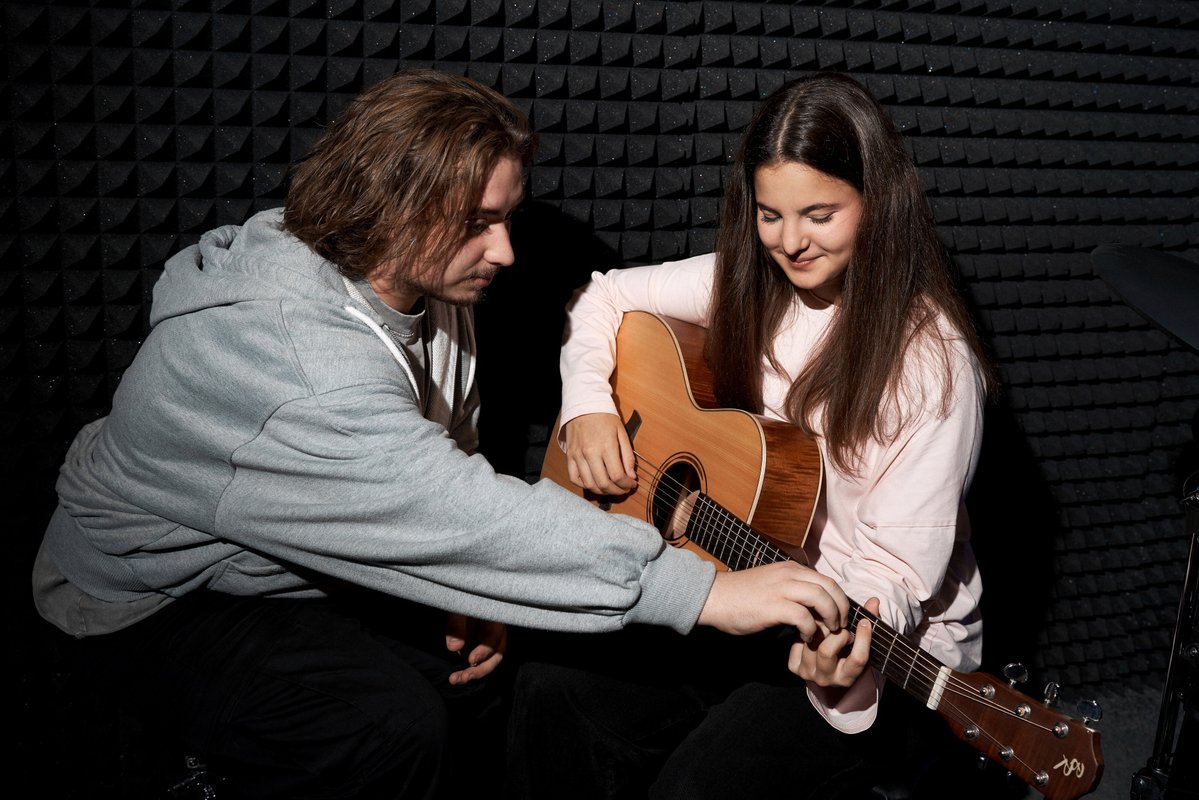 Сын занимается с Дмитрием гитарой. На урок бежит всегда с радостью, полная идиллия с педагогом!)) ну и дома нам устраивает постоянные концерты!